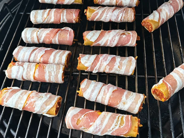 - After filling the Cannelloni's, wrap them well with bacon, making sure the whole round is wrapped. After this, season the shotgun shells again lightly with some BBQ rub.